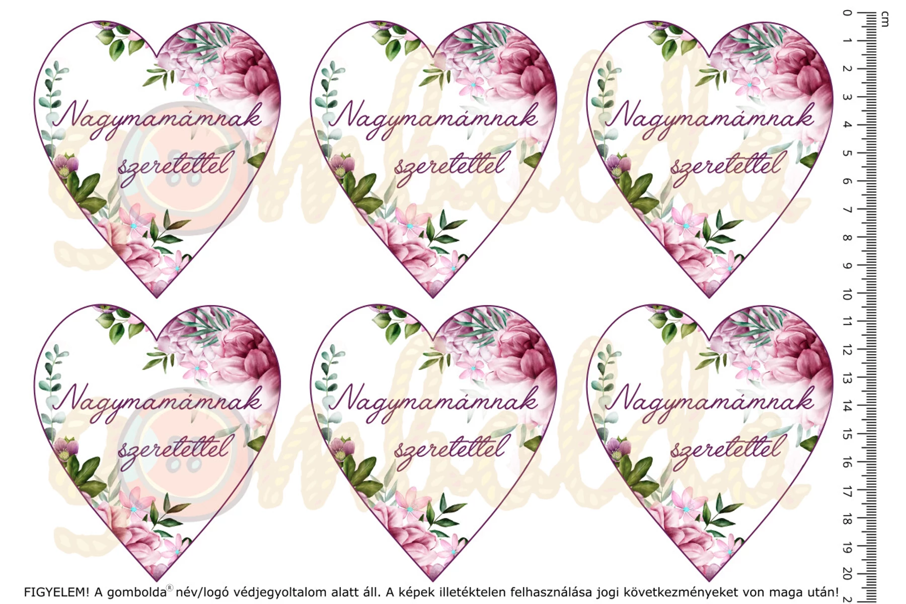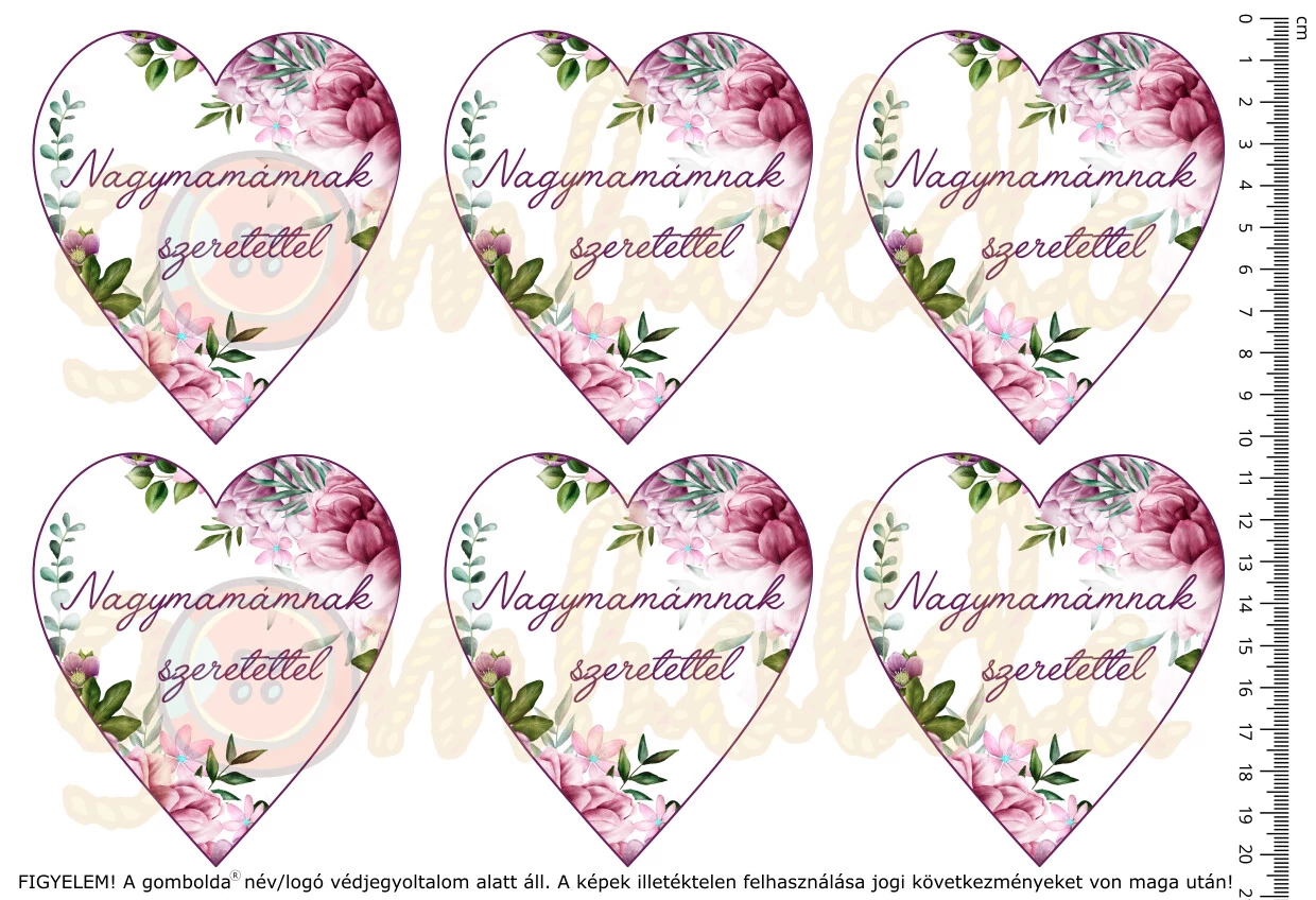 Mintás barkácsfilc - Nagymamámnak szeretettel - festett virágos szív