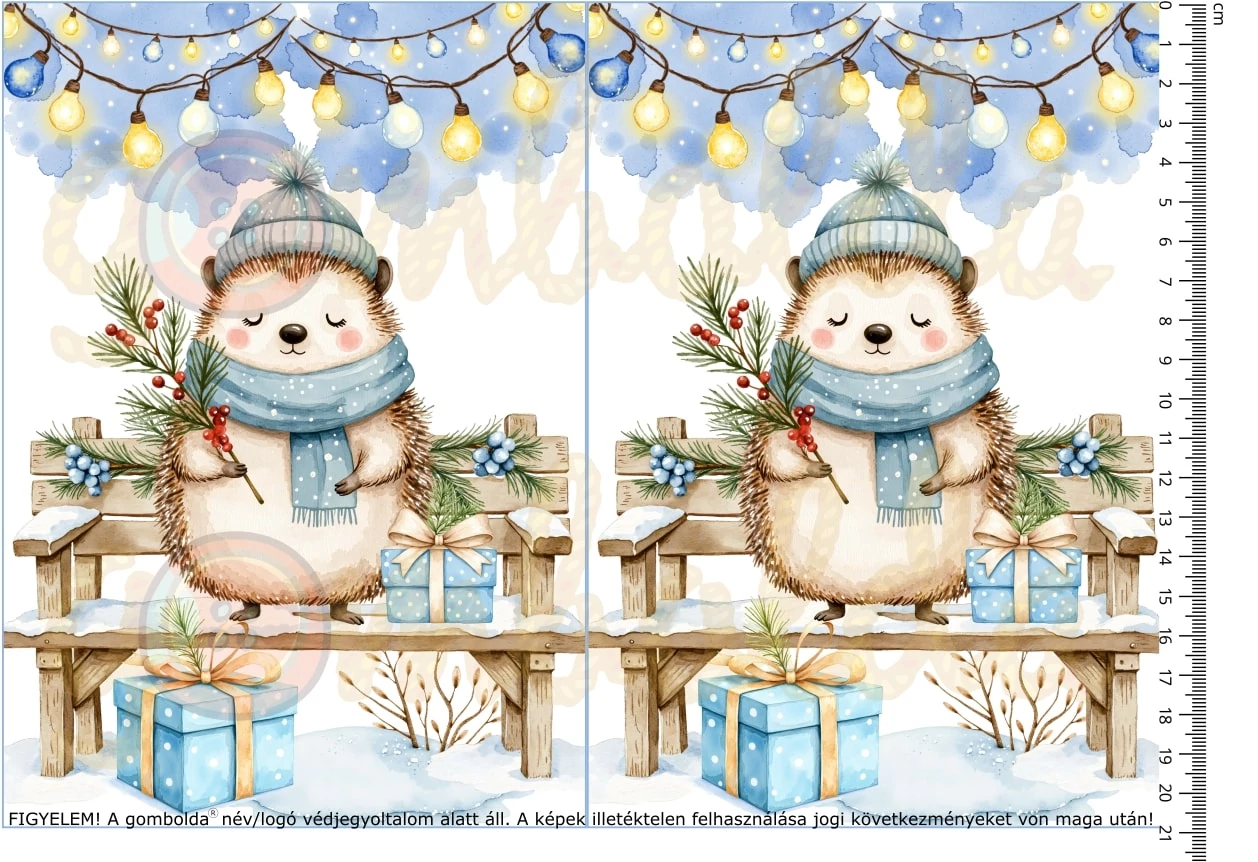 Mintás barkácsfilc - festett téli állatok 2db-os panel- kék süni