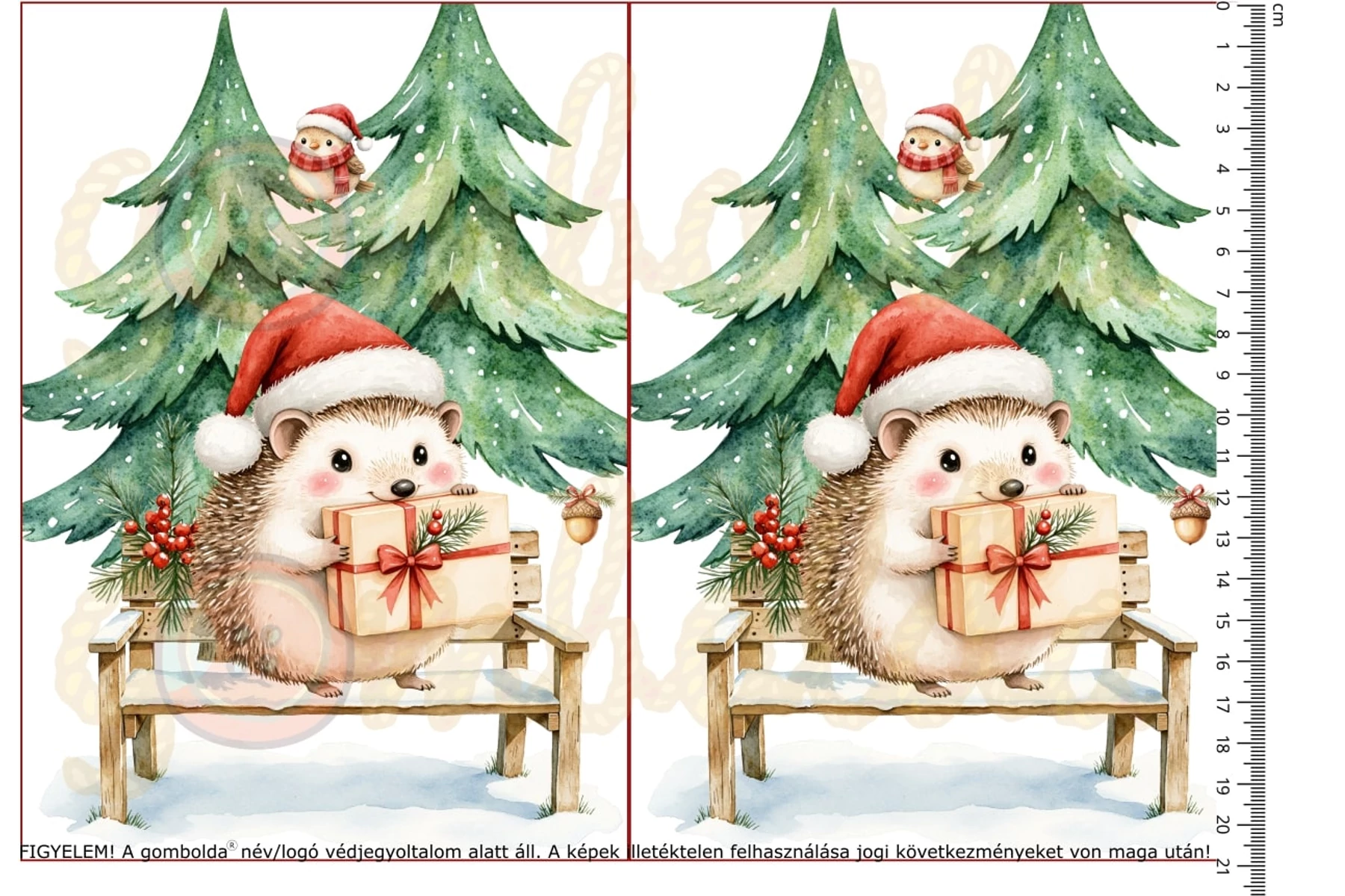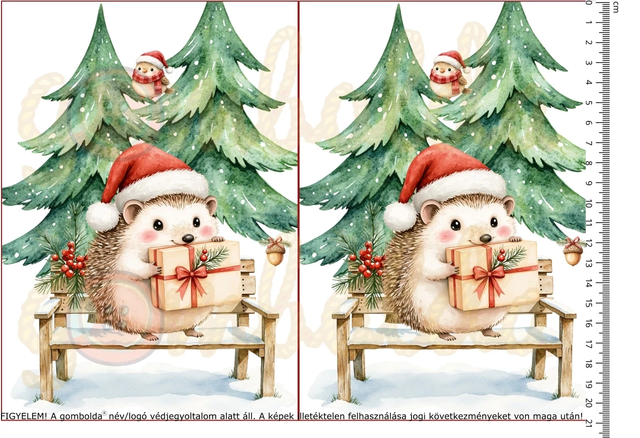 Mintás barkácsfilc - festett téli állatok 2db-os panel- piros süni