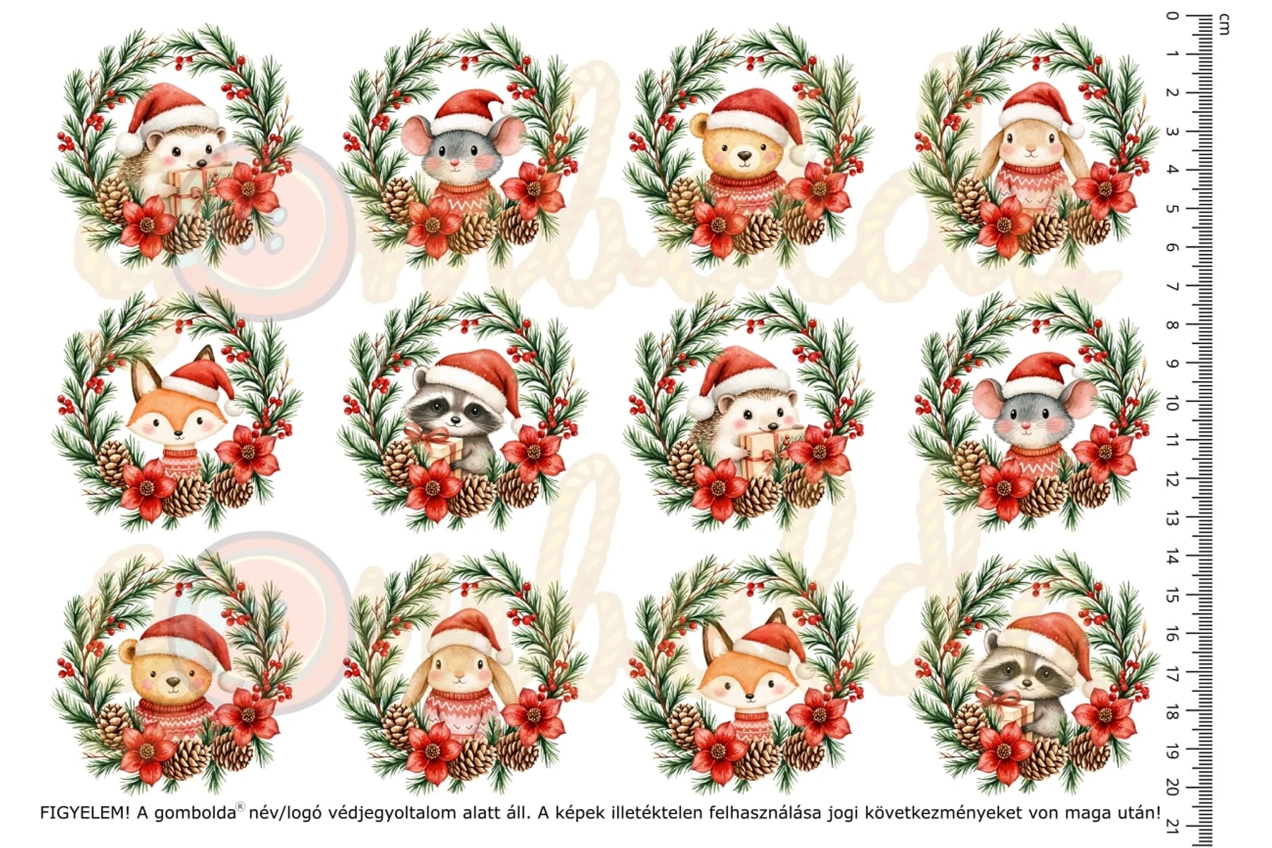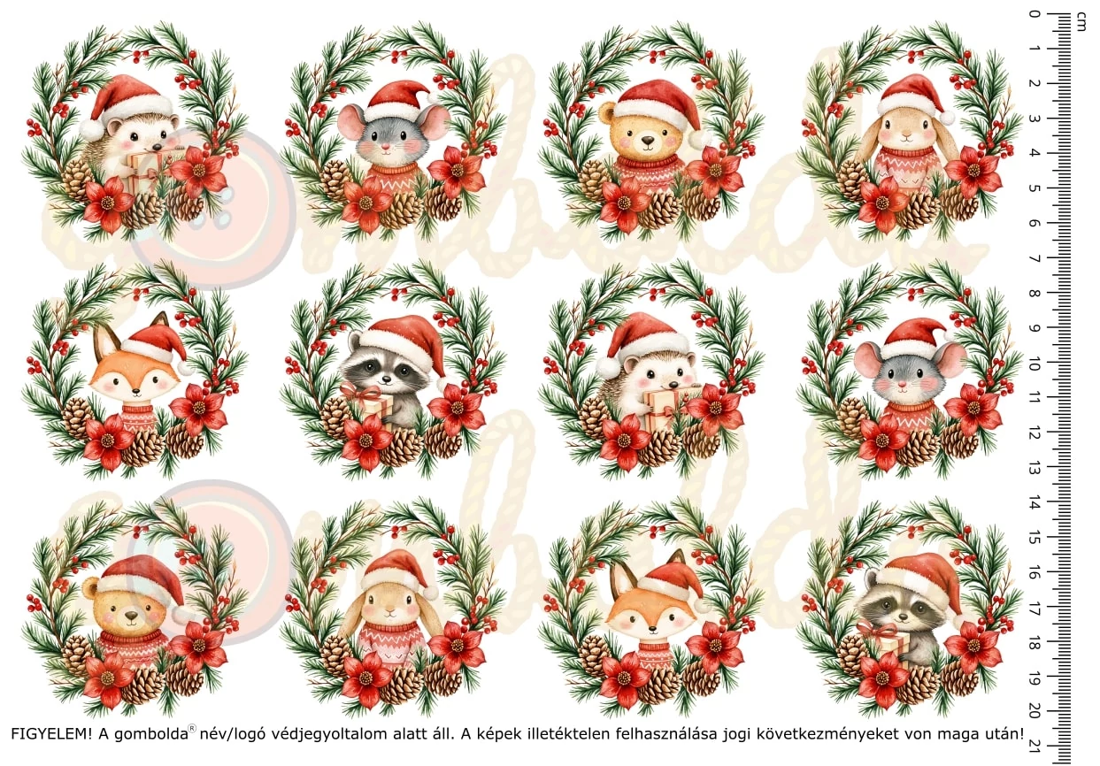 Mintás barkácsfilc - festett téli állatok - piros - koszorú kicsi