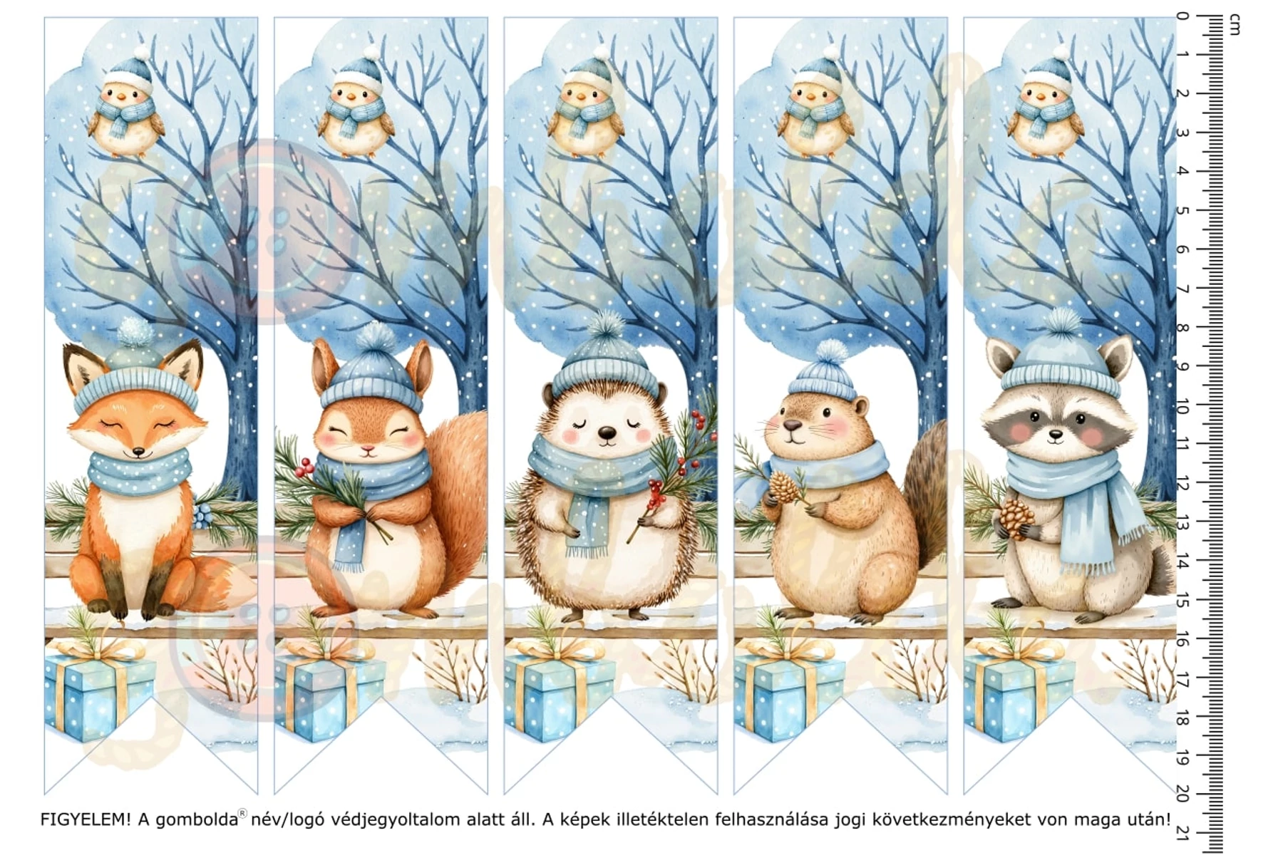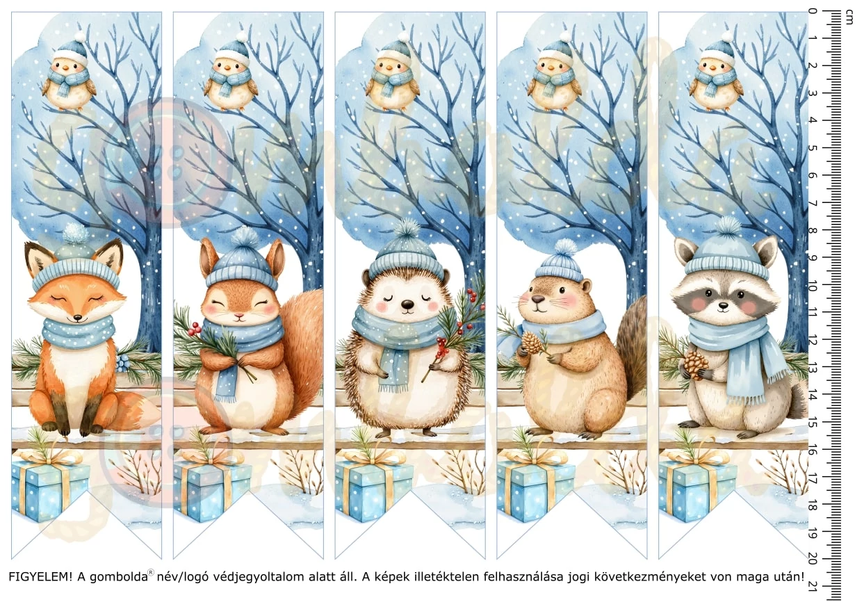 Mintás barkácsfilc - könyvjelző - festett téli állatok kék