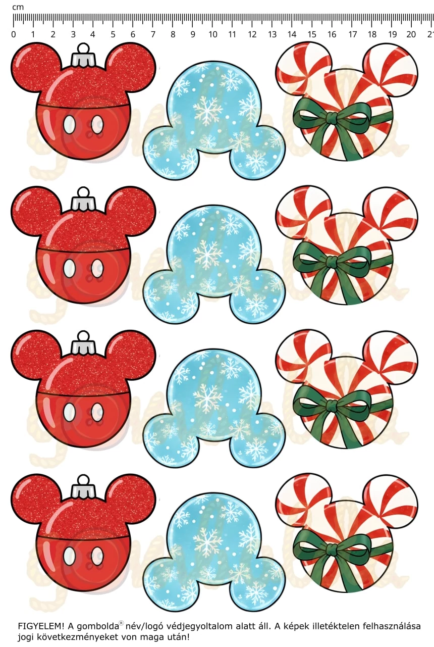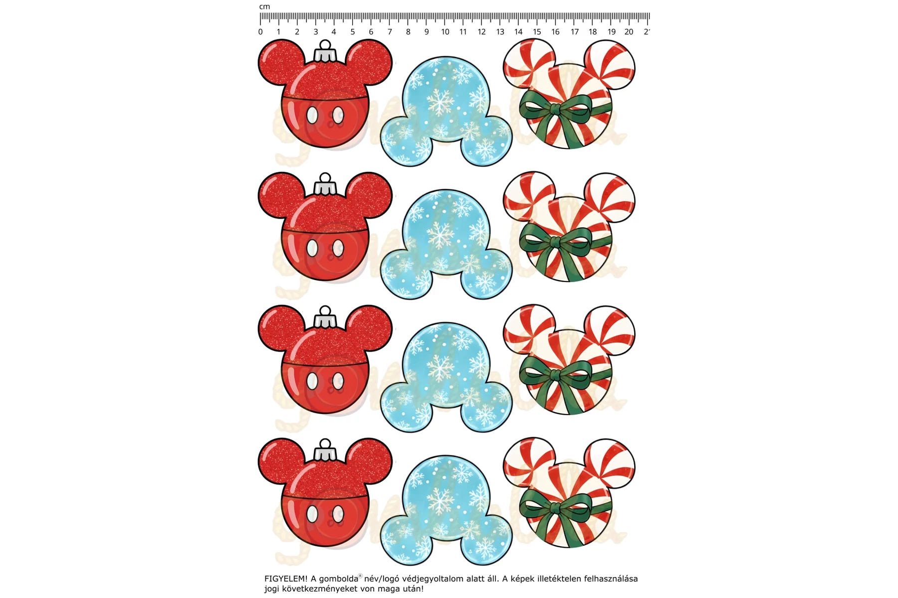 Mintás barkácsfilc - Mickey karácsonya - színes díszek kicsi