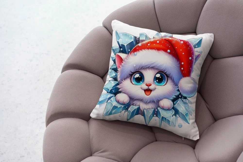 Bársonyszövet párna panel - jeges állatok - cica