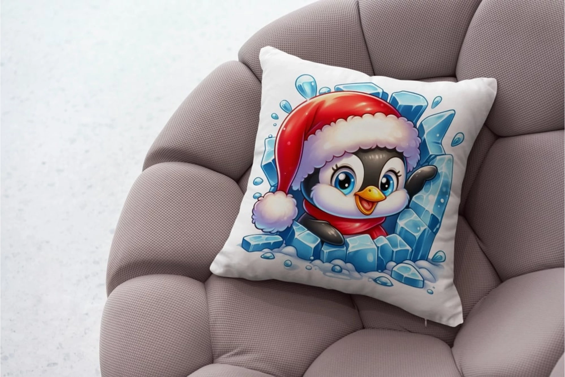 Bársonyszövet párna panel - jeges állatok - pingvin