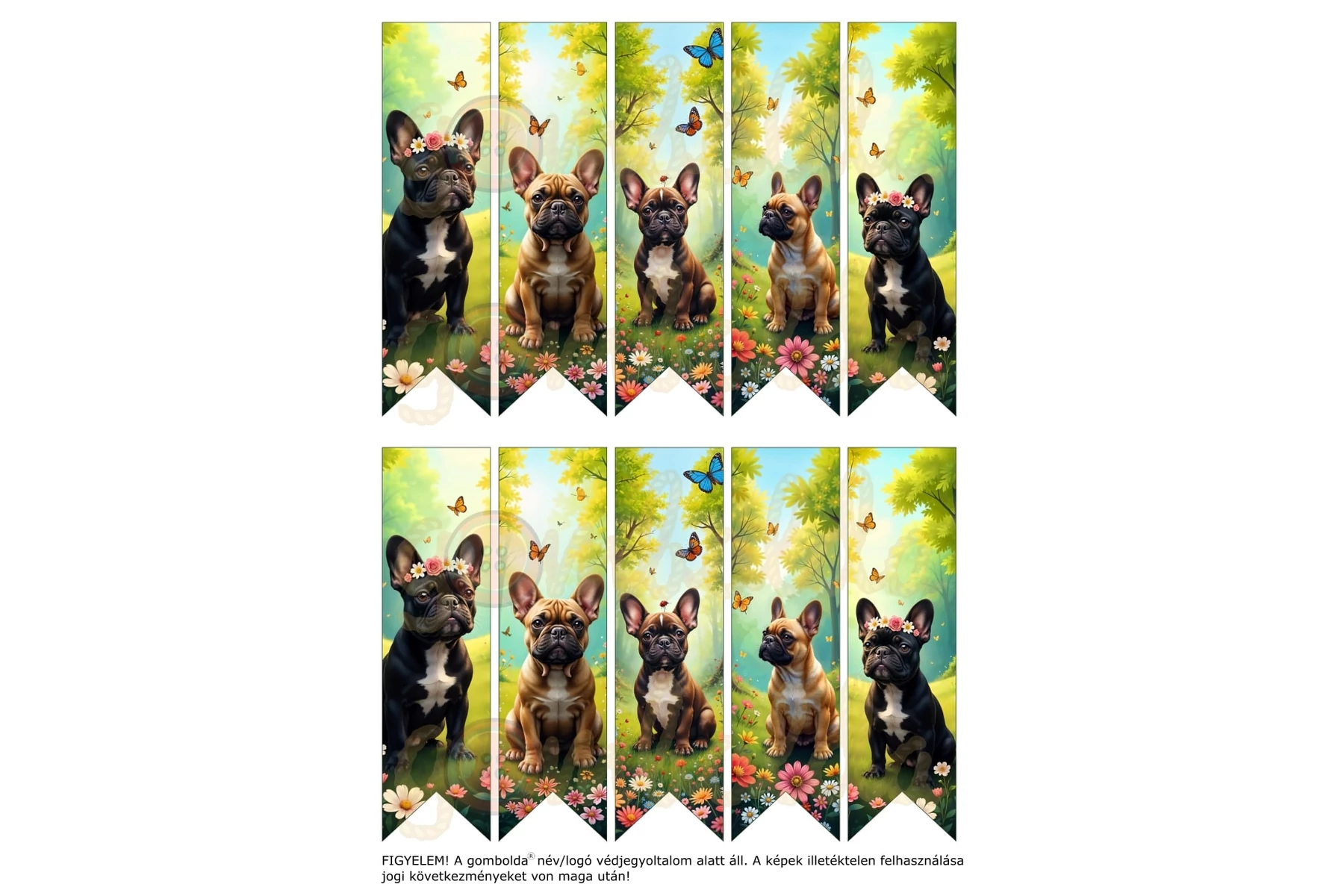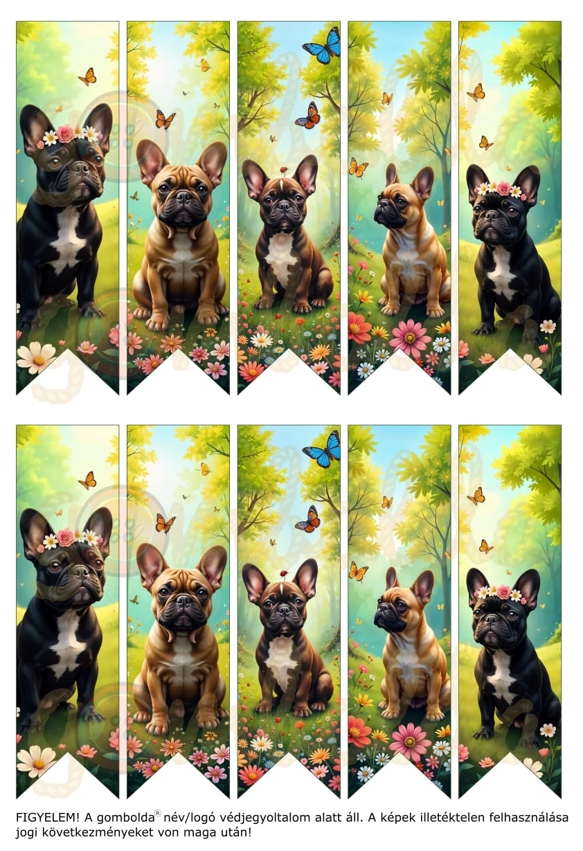 Mintás barkácsfilc - KICSI könyvjelző - tavaszi francia bulldog
