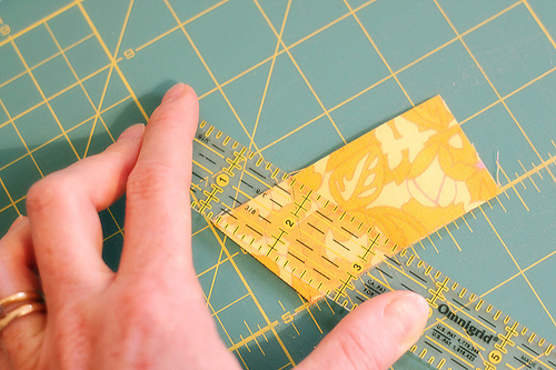 - A zászlófűzér alapjához használhatunk már kész ferdepántot, vagy elkészíthetjük mi magunk is. Vágjunk egy kb. 5cm széles csíkot a választott textilből olyan hosszan, amilyen hosszú a lámpa ernyő fém merevítője. Hajtsuk hosszában félbe, vasaljuk le, majd a vágott széleket szintén hosszában hajtsuk be a már levasalt középvonalhoz és mindkét oldalon vasaljuk le.