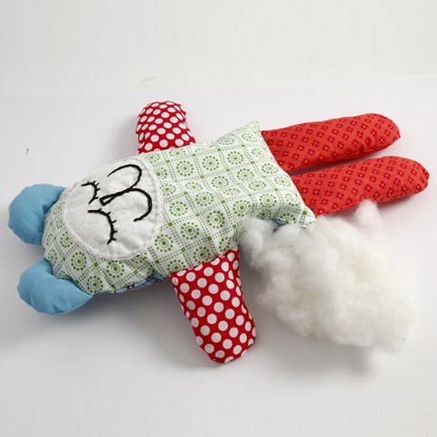 A család legújabb alvós- és játszópajtásához nem kell más, mint egy kevés pamutvászon, hímzőfonal, kétoldalas ragasztófátyol, tömőanyag és két ügyes kéz!
