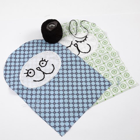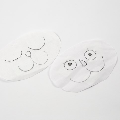 - Láncöltésekkel hímezzük ki az arcokat. Két különböző formában, legyen egy éber és egy alvós pofi.
