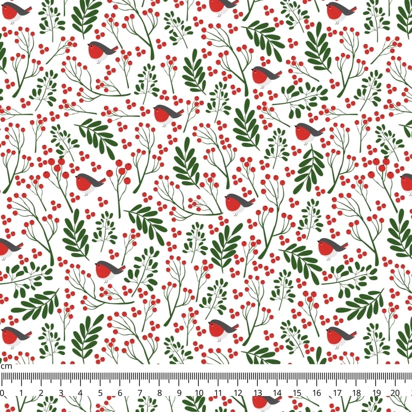 Mintás barkácsfilc méteráru - bogyós vörösbegy