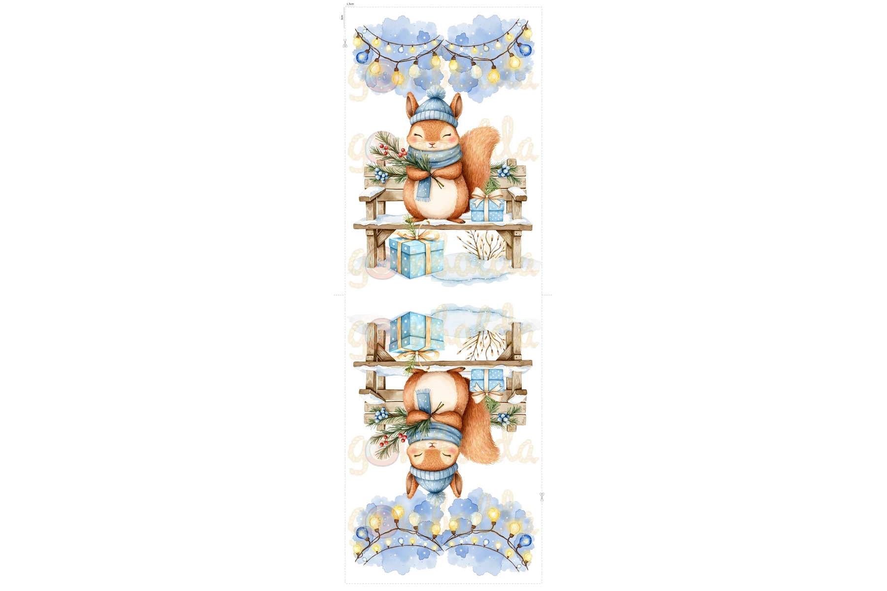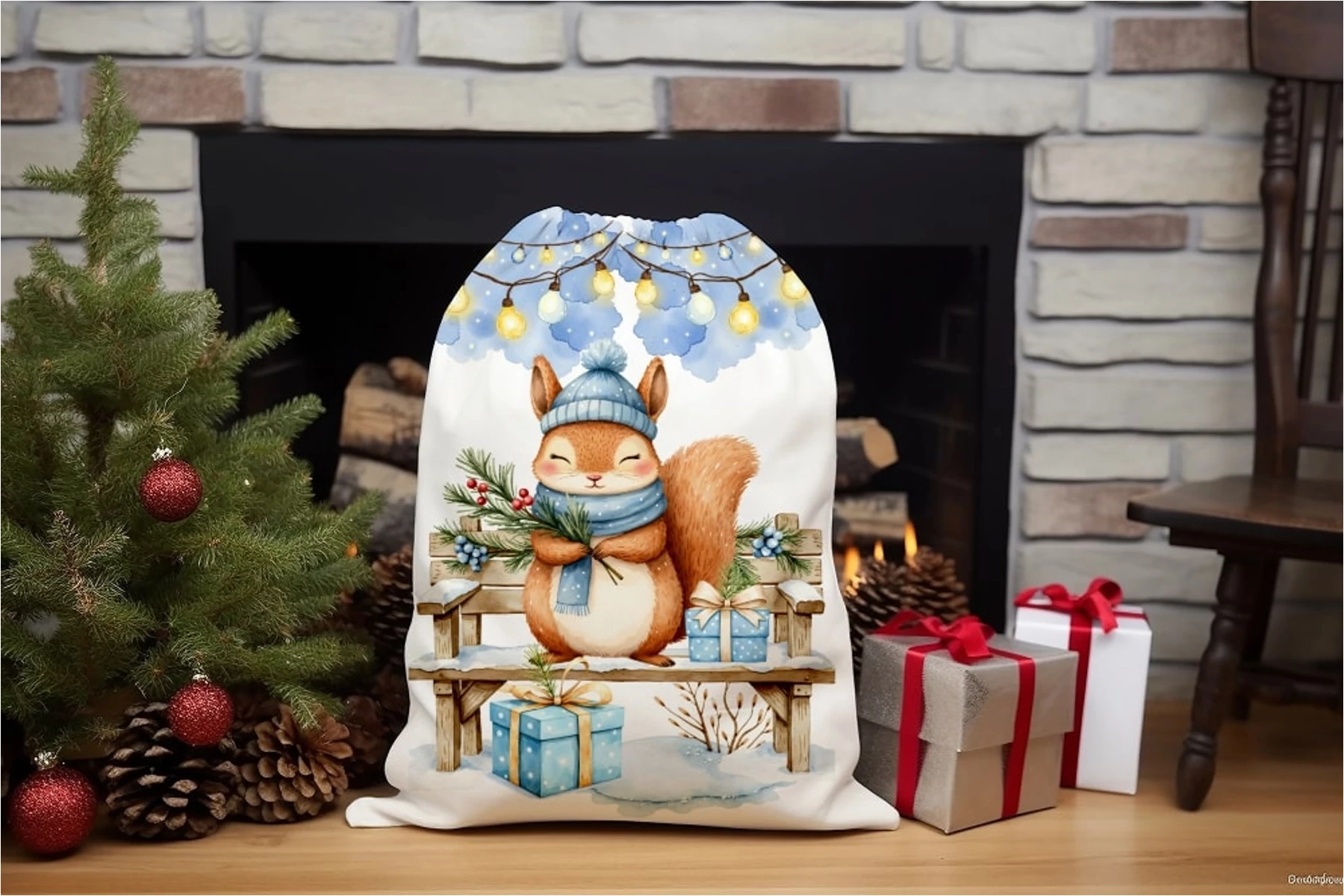 Panama szövet Mikulás zsák panel - festett karácsony - kék mókus
