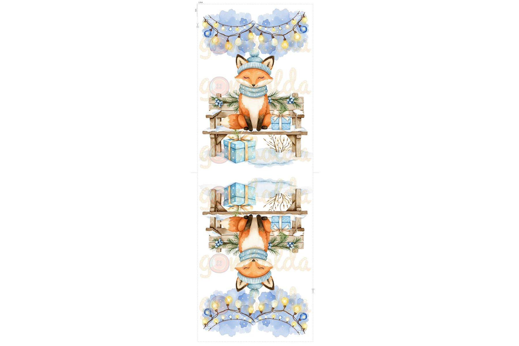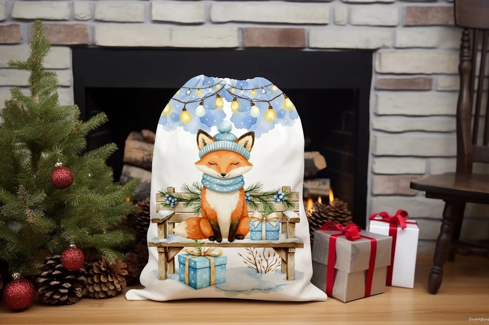 Panama szövet Mikulás zsák panel - festett karácsony - kék róka