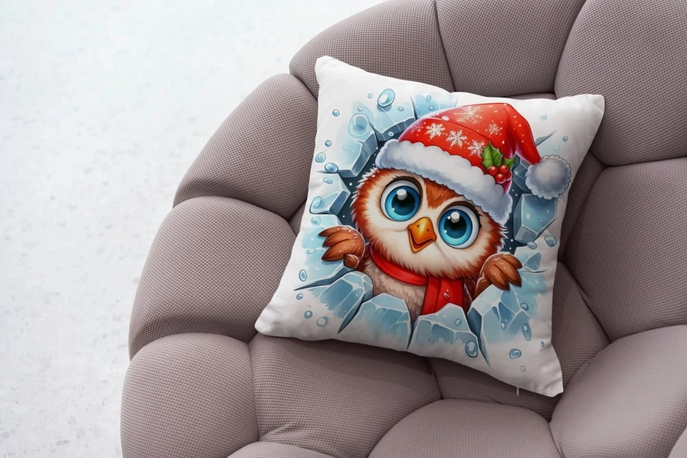 Bársonyszövet párna panel - jeges állatok - bagoly