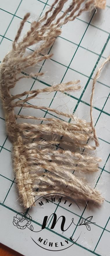 6. Kihúzkodom a szálakat keskeny zsákvászon csíkon rojtoknak.