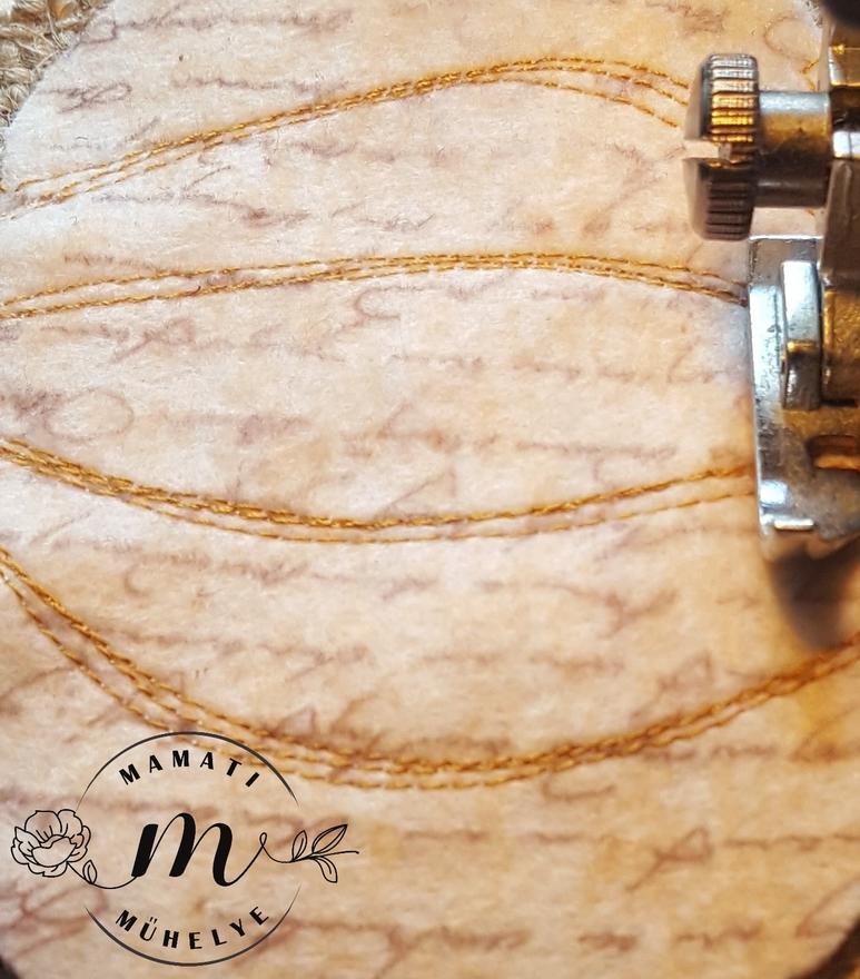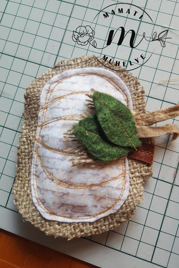 3. Varrógéppel, vagy kézzel a tökre csíkokat varrok, ezek lesznek a tök cikkejei. Ha kézzel varrod, jó sűrű öltések legyenek.