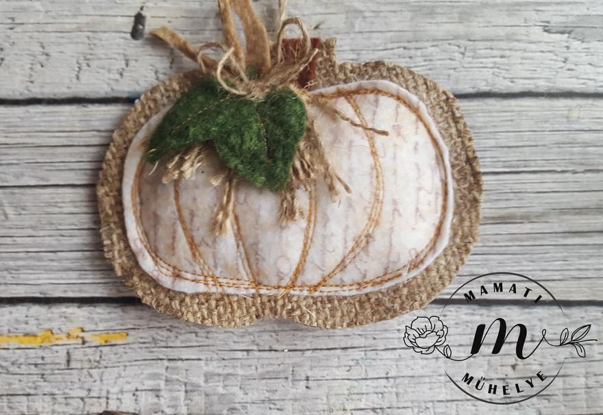 Ha szükséges, kicsit ollóval megigazítom a vászon szélét, vigyázva, hogy a ragasztós részből maradjon a vásznon. Az alsó részem kivágom hullámosra a tök alsó kocsányához igazítva.